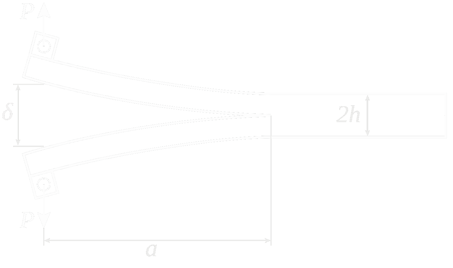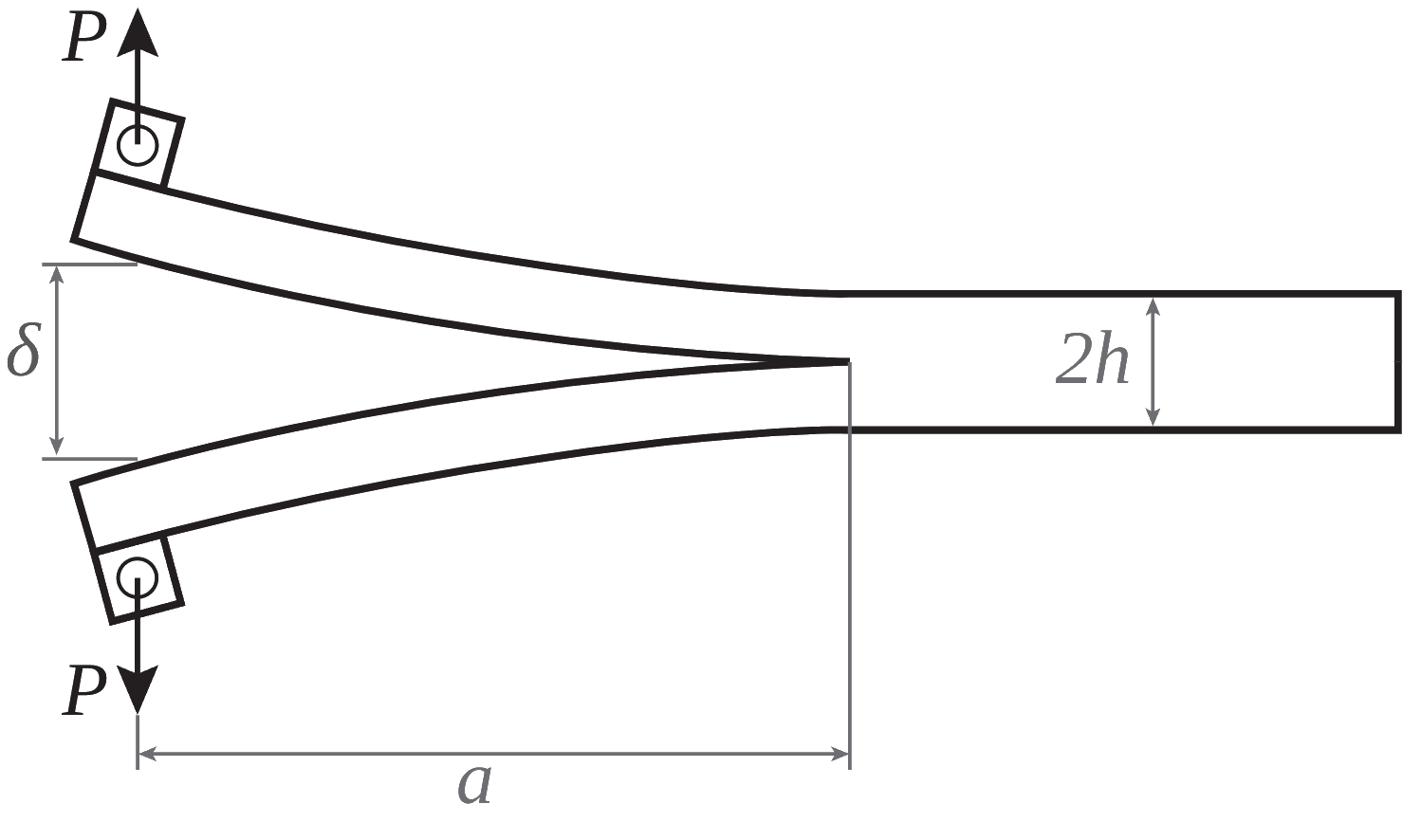 This example is a classic double cantilever beam test commonly used to study mode I interfacial delamination of composite plates.